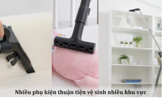 – Các đầu hút chuyên biệt này giúp làm sạch mọi ngóc ngách trong nhà, từ chân tường lẫn góc nhà, tiếp cận được các kệ trên cao, khó với tới, thậm chí hút bụi được trên các loại vải không giặt được.