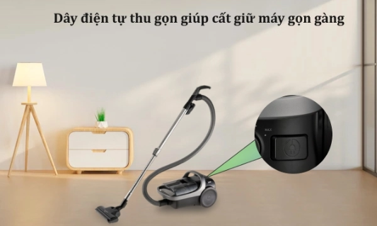 – Máy có dây điện dài 5m, dễ dàng di chuyển đến nhiều khu vực trong nhà mà không sợ vướng dây.