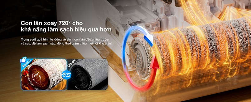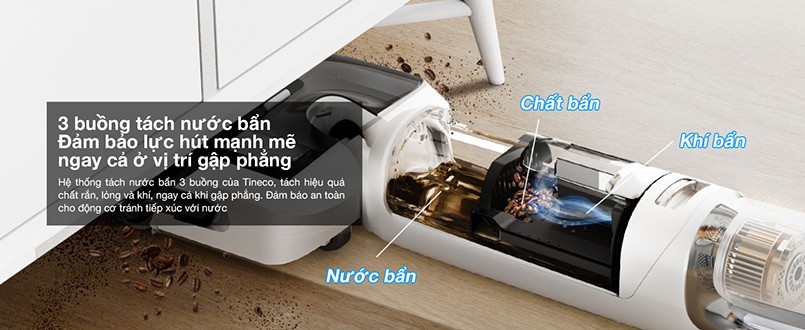 Máy lau nhà Tineco S6 Stretch Pro được trang bị hệ thống làm sạch khép kín giúp xử lý mọi vết bẩn cứng đầu, từ bụi bẩn, vết ố cho đến các mảnh vụn nhỏ. Đặc biệt, bàn chải con lăn xoay 2 chiều 720° giúp làm sạch sâu từng ngóc ngách. Máy có lực hút lên đến 18.000Pa, có thể hút sạch bụi bẩn và nước bẩn, mang lại sàn nhà khô ráo và an toàn.