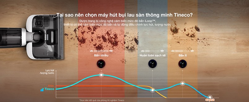 Máy lau nhà Tineco Floor One S6 Stretch Pro được trang bị cảm biến thông minh iLoop™, tự động điều chỉnh lực hút và lượng nước phun ra dựa trên mức độ bẩn trên sàn. Khi phát hiện vết bẩn cứng đầu, máy sẽ tự động tăng lực hút, giúp làm sạch hiệu quả. Khi sàn nhà đã sạch, lực hút sẽ giảm xuống, giúp tiết kiệm nước và năng lượng.