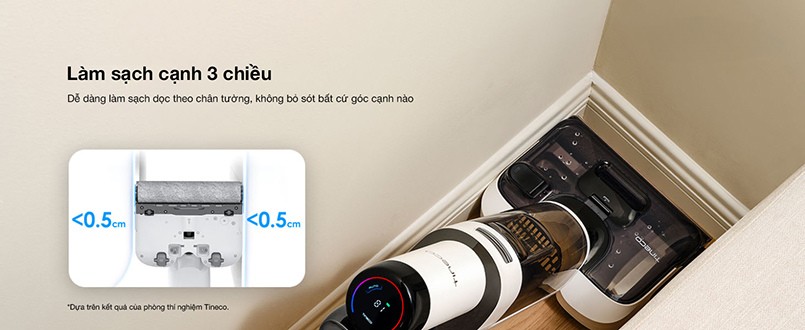 Với thiết kế gập phẳng 180°, máy lau nhà Tineco S6 Stretch Pro có thể tiếp cận các khu vực thấp chỉ cao 13cm, như dưới gầm bàn, giường hay tủ. Điều này giúp bạn dễ dàng làm sạch các khu vực khó tiếp cận mà không cần phải di chuyển đồ đạc.
