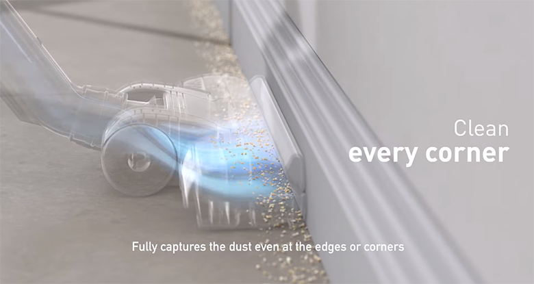 Khi chúng ta di chuyển, bụi bị thổi bay trong không khí và dần dần tích tụ ở những nơi ít có không khí lưu thông. Đây là lý do có rất nhiều bụi gần tường và ở các góc phòng. Đầu hút đa góc cạnh của máy hút bụi MC-CL605KN49 có khả năng tự động bật mở khi tiếp xúc với cạnh tường, giúp máy hút toàn bộ bụi bẩn còn sót loại ở các góc vuông hẹp mà đầu hút thường không thể hút sạch được.