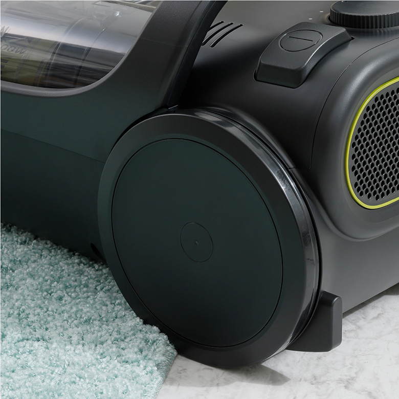 Bánh xe mềm, kích thước lớn giúp máy di chuyển linh hoạt, nhẹ nhàng, êm ái, tránh làm trầy xước sàn.