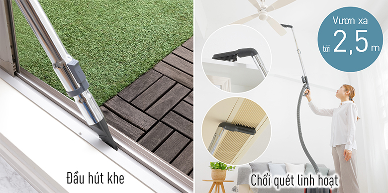 Panasonic MC-CL605KN49 hút sạch bụi trong các khe hẹp với đầu hút phụ
