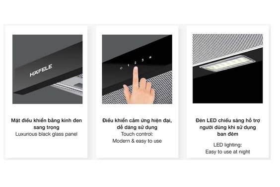 Máy hút mùi âm tủ Hafele HH-TT70A (533.86.817) gây ấn tượng với động cơ đồng trục hỗ trợ tới 3 tốc độ hút. Máy có công suất hoạt động lớn đến 203W, cho lực hút tối đa là 440 m³/h, giúp khử mùi nhanh chóng, hiệu quả. Tuy nhiên, các nhà sản xuất vẫn đảm bảo máy vận hành êm ái với độ ồn thấp, tối đa 67 dB, chỉ tương đương tiếng nói chuyện nên không gây ảnh hưởng đến sinh hoạt hằng ngày.
