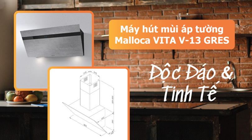 Máy hút mùi áp tường Malloca VITA V-13 GRES đến từ thương hiệu Malloca, một trong những nhà sản xuất thiết bị nhà bếp hàng đầu đến từ Ý.