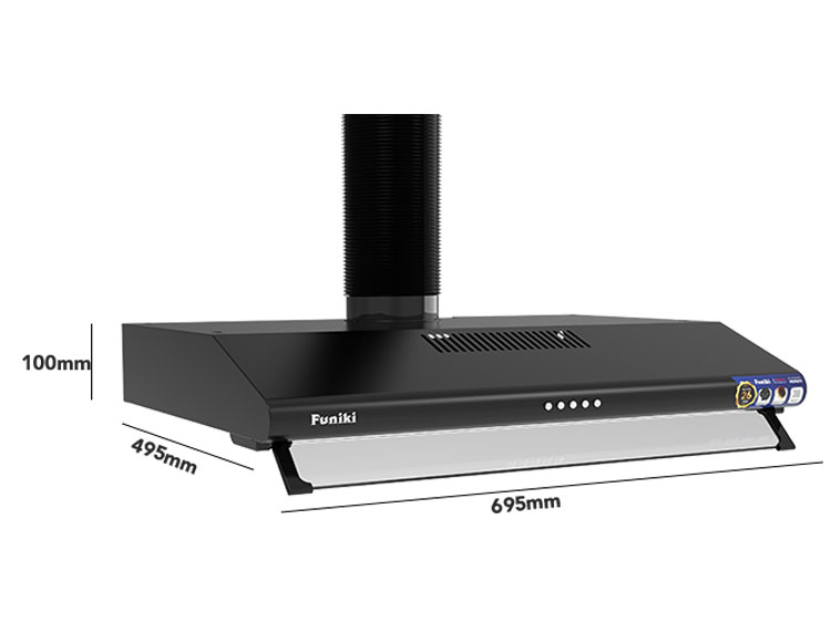 Máy hút mùi Funiki HKH9638 mang phong cách cổ điển mỏng nhẹ, thiết kế áp tường, có thể lắp âm tủ giúp tiết kiệm không gian cho gia đình, tiện lợi cho cả những căn bếp nhỏ hẹp. Thân máy có tông màu đen chủ đạo mang lại thẩm mỹ tinh tế cho căn bếp gia đình. Máy có chiều ngang 69.5cm tương đồng với hầu hết các mẫu bếp đôi trên thị trường hiện nay, tạo nên sự cân đối hoàn hảo.