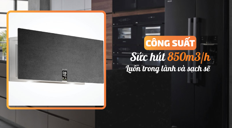 Với công suất hút lên đến 850m3/h đảm bảo không khí trong không gian bếp luôn sạch sẽ và thoáng mát. Điểm đặc biệt của máy là độ ồn khi hoạt động chỉ 58dB, giúp bạn yên tâm thực hiện công việc nấu nướng mà không bị ảnh hưởng bởi tiếng ồn.