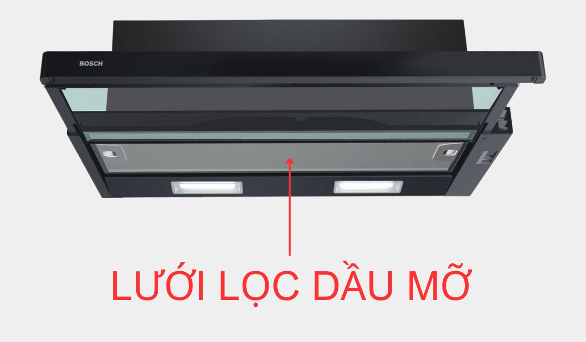 Lưới lọc kim loại tích hợp trên máy hút mùi Bosch DFT93CA61B