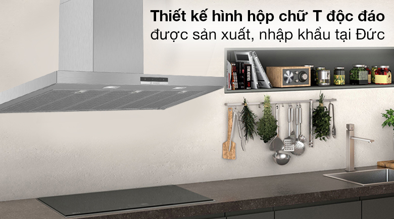 Máy hút mùi Bosch được sản xuất và nhập khẩu nguyên chiếc từ Đức thuộc dòng hút mùi áp tường có thiết kế hình hộp chữ T độc đáo