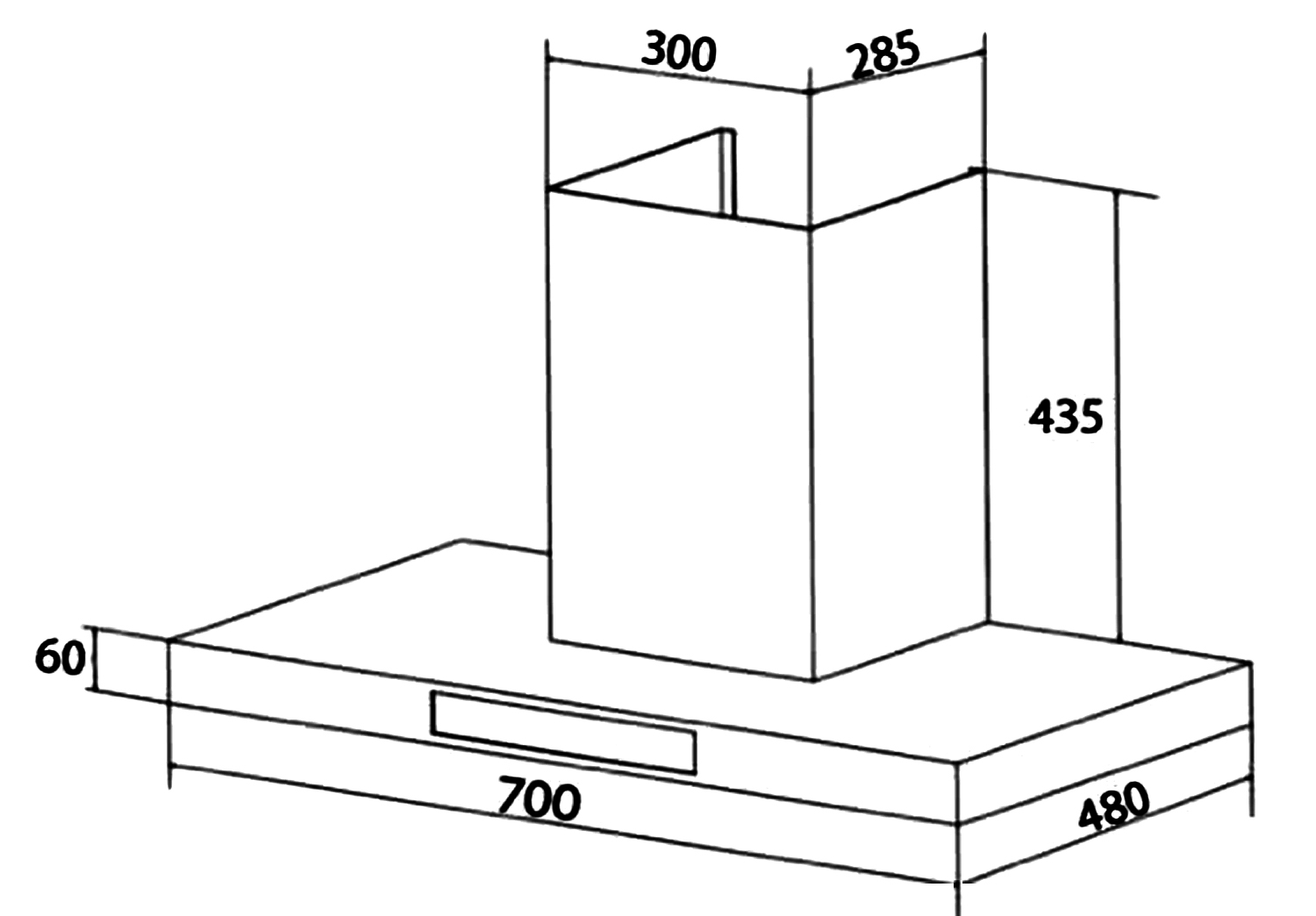 Kích thước của máy hút mùi Canzy CZ-T700PRO là R700 x S480 x C495 (mm).