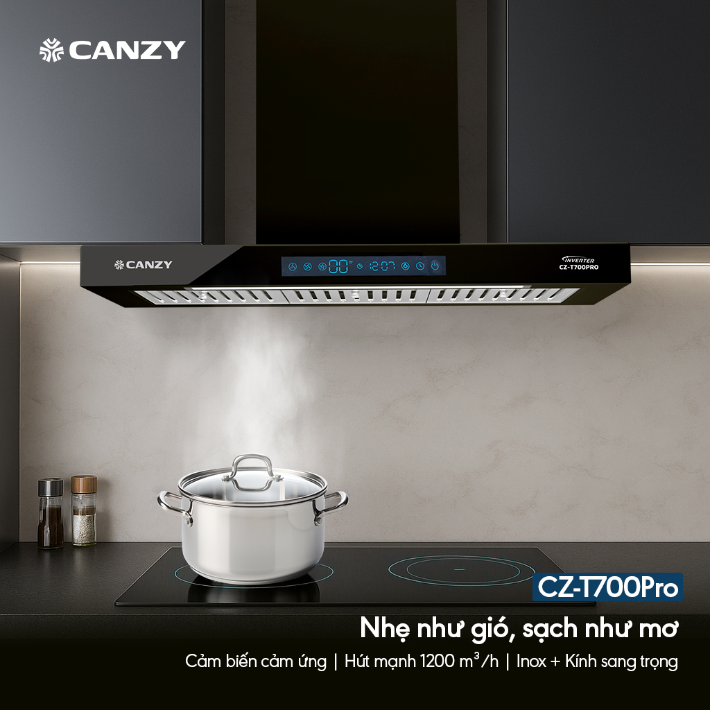 Với khả năng bền bỉ, chịu lực và chịu nhiệt tốt, cùng với công suất hút mạnh mẽ và hiệu quả, Canzy CZ-T700PRO có thể xử lý tốt mọi loại khói và mùi trong không gian bếp. Dù không gian bếp lớn hay nhỏ, đóng kín hay mở ra, máy vẫn đảm bảo rằng môi trường nấu nướng luôn được duy trì sạch sẽ và thoải mái cho người dùng. Điều này làm cho Canzy CZ-T700PRO trở thành một lựa chọn lý tưởng cho mọi gia đình và không gian bếp.