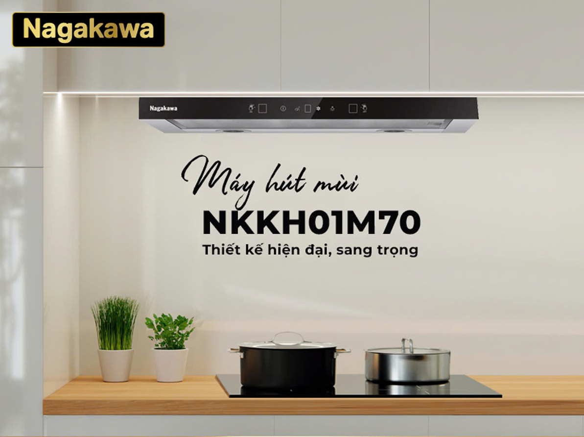 Máy hút mùi cao cấp Nagakawa NKKH01M70 có thiết kế thân máy màu bạc, mặt kính màu đen sang trọng. Thân máy được làm từ kim loại sơn tĩnh điện cao cấp, mặt kính cường lực cao cấp tráng men cho độ bền cao, sáng bóng.