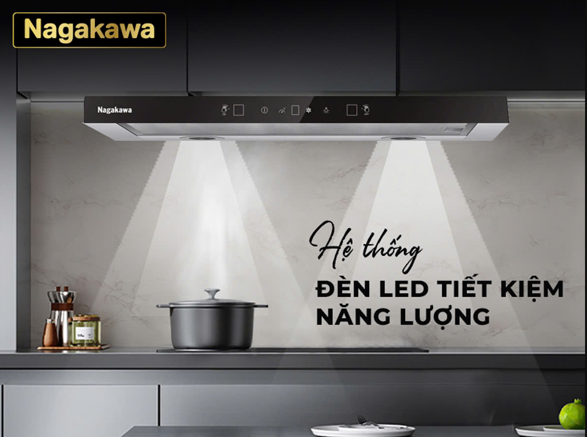 Máy hút mùi Nagakawa NKKH01M70 có tích hợp đèn LED chiếu sáng giúp người dùng quan sát món ăn đang nấu rõ ràng hơn.
