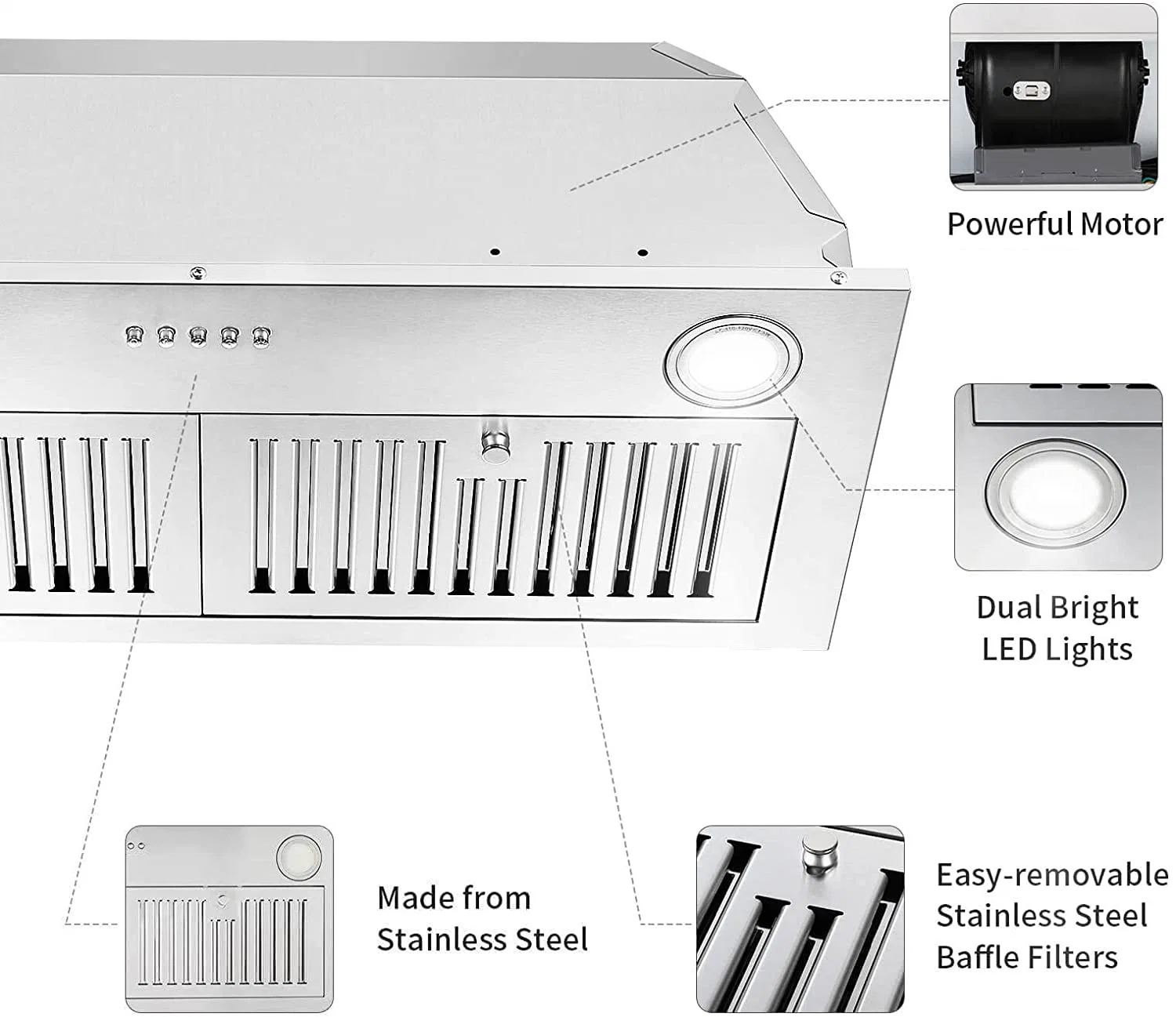 Hệ thống lưới lọc inox nan, giảm tiếng ồn, lọc sạch dầu mỡ và mùi hôi