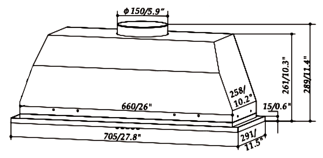 Với chiều ngang 705mm, máy hút mùi này có thể hoạt động trên diện tích rộng, đồng thời đường ống dẫn khí rộng 150mm giúp tăng cường khả năng hút mạnh mẽ và hiệu quả.
