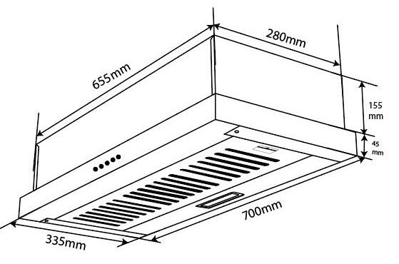 Kích thước của máy hút mùi Kocher K-6270V là R700 x S335 x C200 (mm). Sản phẩm được sản xuất tại nhà máy chính hãng của Kocher tại Việt Nam
