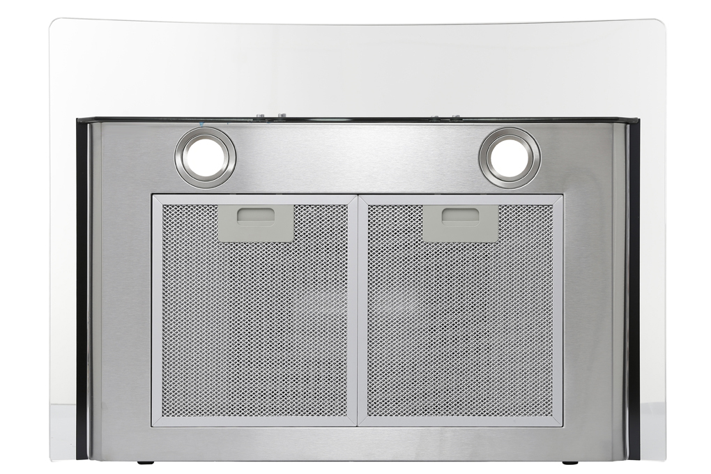 Thiết kế máy hút mùi gắn tường kính cong sang trọng, tạo điểm nhấn cho căn bếp