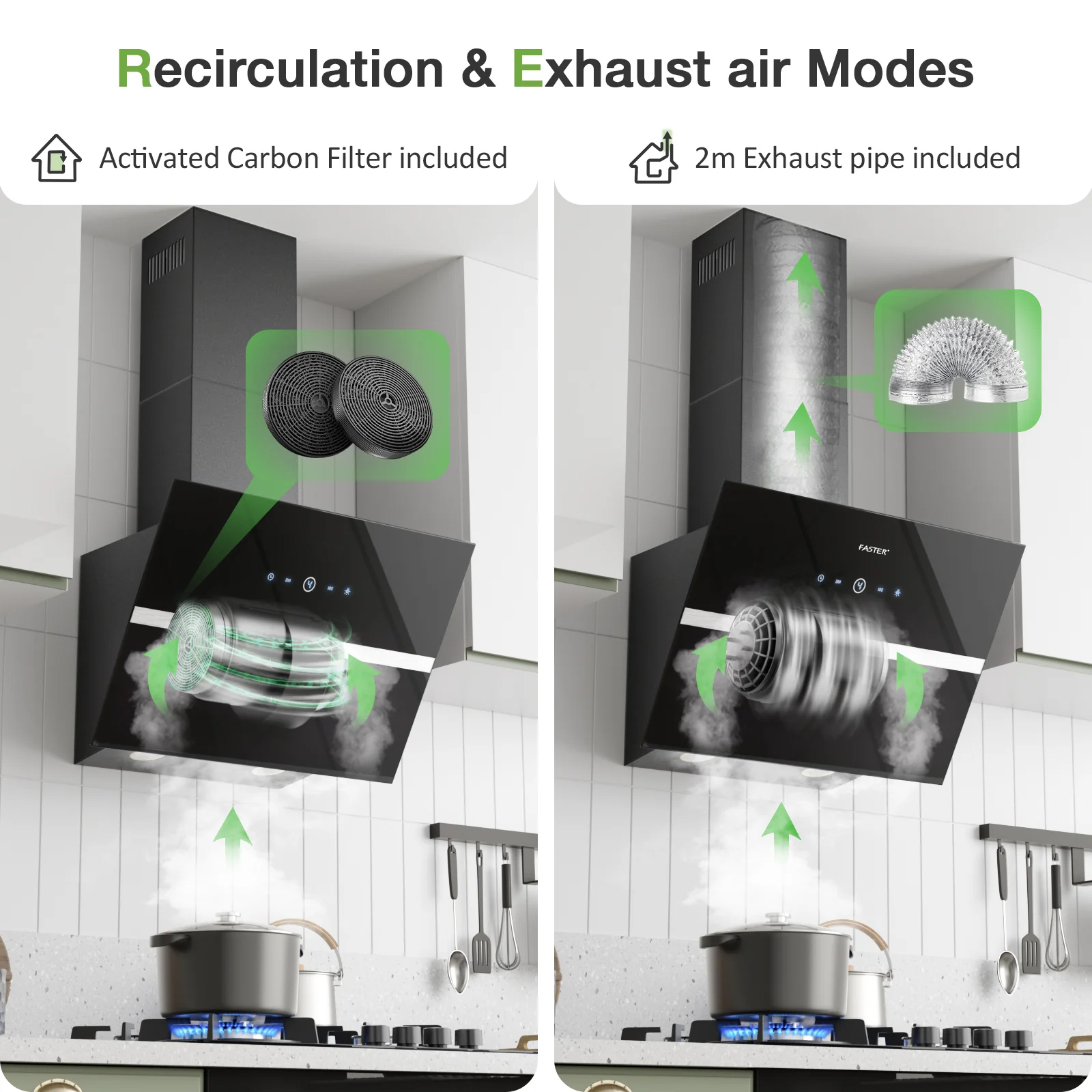 Máy hút mùi Faster FS 3688SS-70 sử dụng công nghệ than hoạt tính hoạt động dựa trên cơ chế quay vòng tuần hoàn, đưa toàn bộ khói và mùi thức ăn vào trong khoang máy qua bộ lọc than. Sau đó, không khí đã được làm sạch sẽ được trả lại vào không gian bếp. Quá trình này được điều khiển bởi động cơ nằm phía sau bộ lọc. Trước khi quá trình lọc, các bụi bẩn và dầu mỡ được ngăn lại ở vỉ lưới lọc mỡ bên ngoài khoang máy, đảm bảo không khí trả lại sạch cho không gian bếp luôn trong lành và sạch sẽ lên đến 99%. Điều này đảm bảo rằng môi trường nấu nướng của bạn được duy trì trong sạch và an toàn cho sức khỏe.