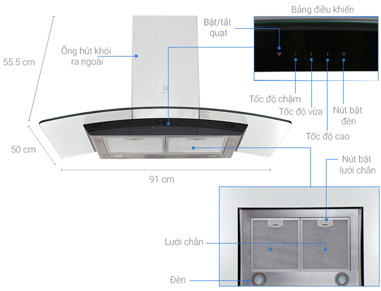 Máy hút mùi Electrolux EFC936GAR hút khói nhanh, cho không gian bếp trong sạch, máy dễ sử dụng, thích hợp cho mọi gia đình.