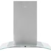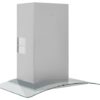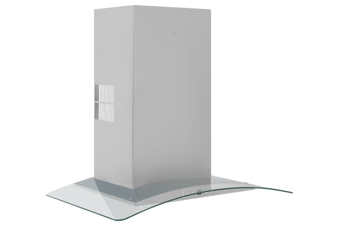 – Máy hút mùi áp tường dạng kính cong, tông màu bạc inox sáng, góp phần hài hòa thiết kế nội thất căn bếp gia đình.