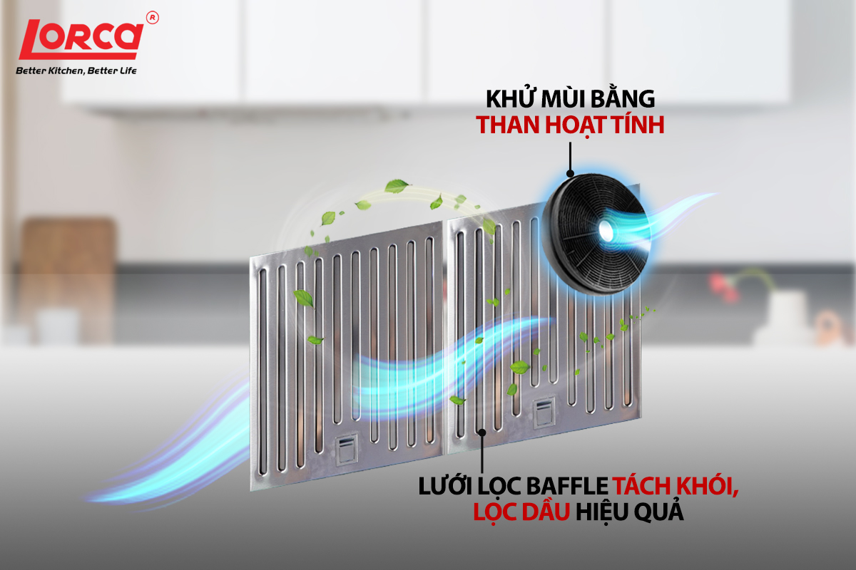 Máy hút mùi Lorca TA-2001MD-70 sử dụng phương pháp hút mùi trực tiếp tức mùi được đẩy ra ngoài theo đường ống thoát D150. Đồng thời chức năng khử mùi bằng than hoạt tính sẽ giúp cho không khí trong phòng bếp luôn sạch sẽ. Cách thức này sẽ giúp máy có hiệu quả tới 100% và mùi sẽ được đẩy hoàn toàn ra ngoài trời.