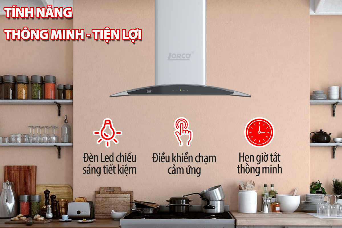 Máy hút mùi Lorca TA-2001C-90 sử dụng bảng điều khiển phím cảm ứng gồm 3 tốc độ hút phù hợp với lượng mùi và khói khi nấu ăn để đảm bảo sạch mùi cho không gian bếp nhà bạn.