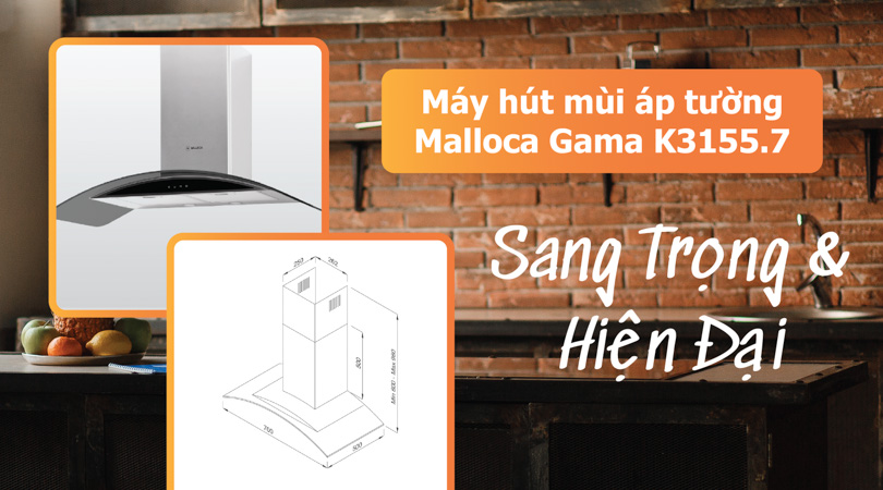 Máy hút mùi áp tường Malloca Gama K3155.7 là sản phẩm cao cấp của thương hiệu Malloca, được sản xuất tại Thổ Nhĩ Kỳ.