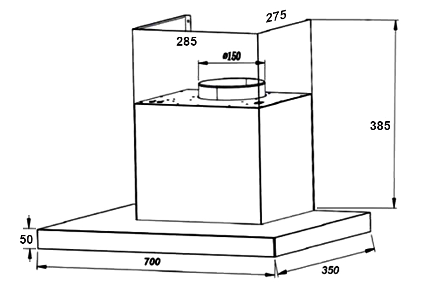 Kích thước của máy hút mùi Spelier SP 109MC là R700 x S350 x C435 mm.