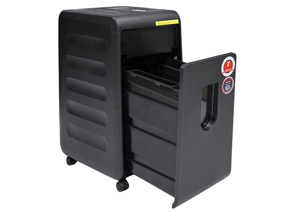 Máy có kiểu hủy vụn, kích thước miệng hủy là 230mm, dung tích thùng chứa tới 30 lít giúp người dùng không phải vệ sinh thùng chứa thường xuyên, thoải mái hủy tài liệu số lượng lớn cùng lúc. Thùng rác thiết kế kiểu kéo ra vệ sinh dễ dàng.