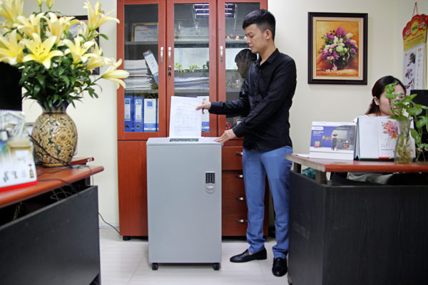 – Máy tự khởi động, tắt máy khi hủy tài liệu xong
