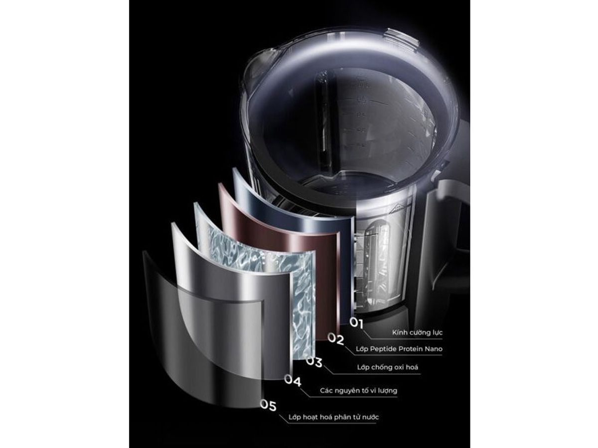 Đặc biệt cối xay được làm từ thủy tinh Borosilicate 5 lớp cao cấp vừa đảm bảo độ bền bỉ, không làm ảnh hưởng đến sức khỏe đồng thời giúp việc vệ sinh đơn giản, nhẹ nhàng hơn.