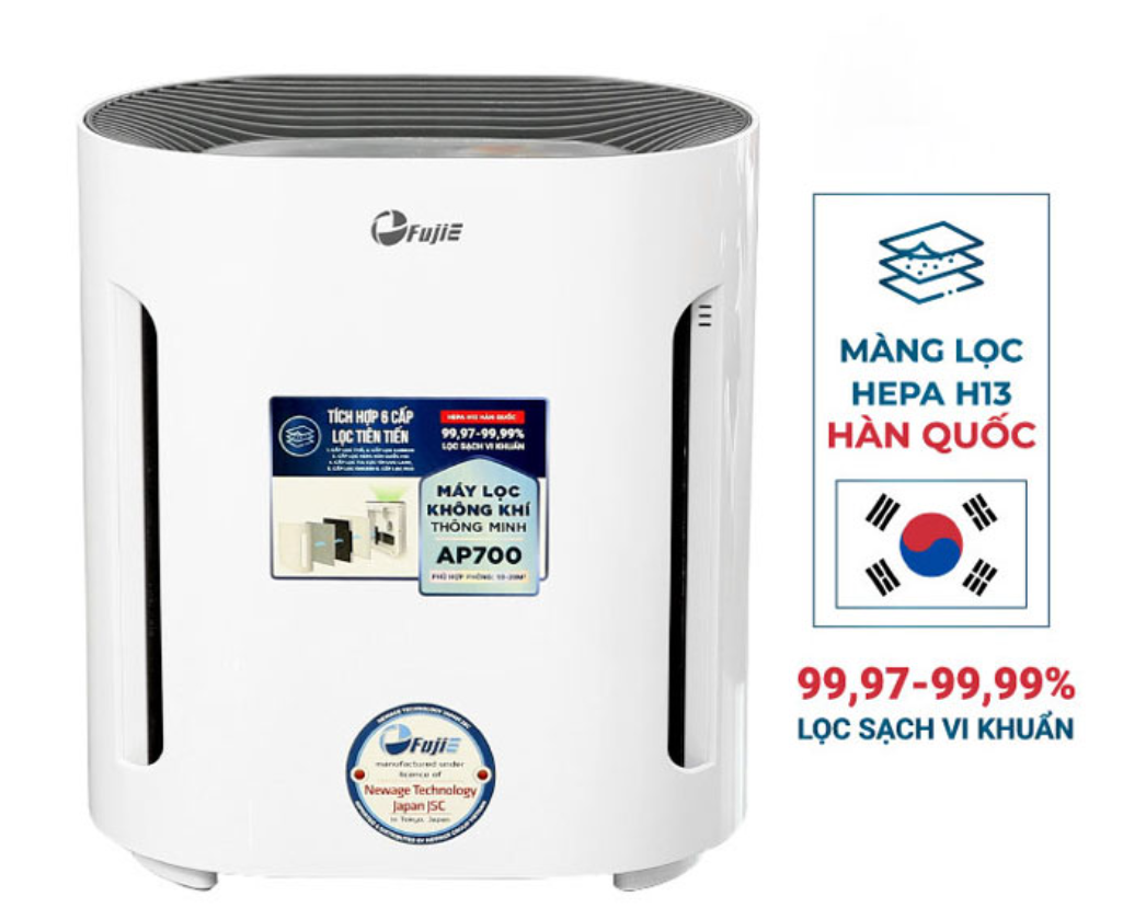 Máy lọc không khí FujiE AP700 trang bị 6 cấp lọc vượt trội cho hiệu quả lọc sạch 99,98% bụi mịn, trả lại không khí trong lành, an toàn cho sức khỏe gia đình bạn.