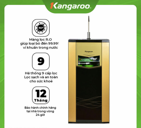 Máy lọc nước Kangaroo thiết kế gọn đẹp, vỏ có màu vàng đồng sang trọng