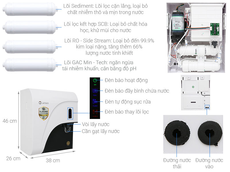 + Lõi số 3 – RO- Side Stream thay lõi sau 36 tháng sử dụng.