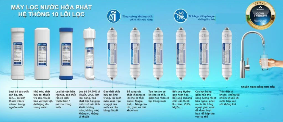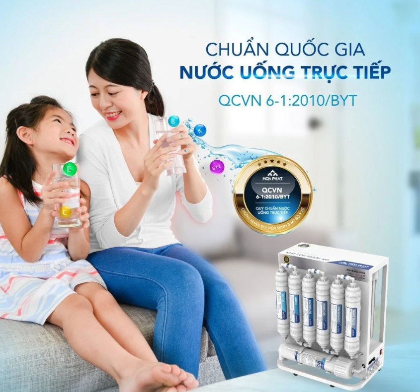 Máy lọc nước RO cho ra nguồn nước sau lọc đạt chuẩn quốc giá nước tinh khiết uống trực tiếp theo tiêu chuẩn của Bộ Y Tế QCVN 6-1:2010/ BYT.