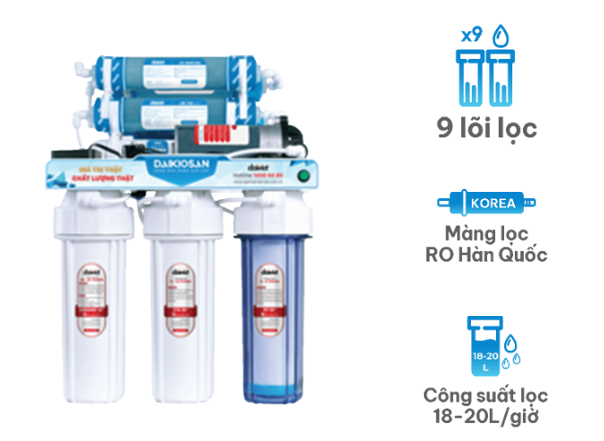 Máy lọc nước RO Daikiosan DSW-34009D gồm 9 lõi lọc sẽ cho nguồn nước đầu ra vô cùng tinh khiết đạt tiêu chuẩn và đảm bảo an toàn cho sức khỏe người sử dụng.