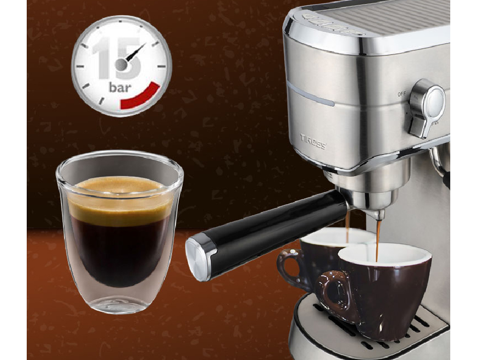 Máy pha cà phê Espresso Tiross TS6212 được trang bị công suất hoạt động mạnh mẽ, lên tới 1.450W kết hợp với hệ thống ủ nhiệt nhanh chân không, giúp pha chế cà phê vừa nhanh, vừa chuẩn vị. Đặc biệt, chiếc máy này có áp suất bơm khá mạnh, tối đa 15 bar nên chỉ trong thời gian ngắn, nước có thể thẩm thấu nhanh chóng qua bột cafe và chiết xuất ra những hương vị tinh túy nhất của cafe.
