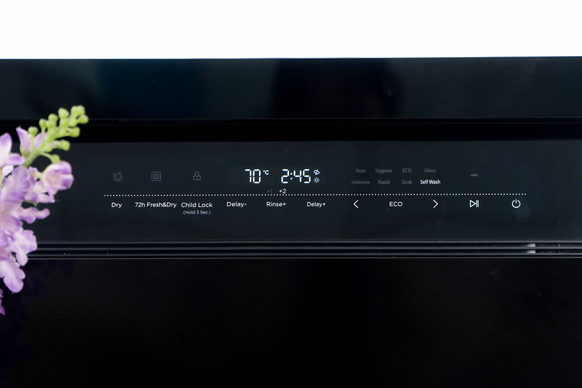 Tự làm sạch máy | Self Wash | 65-70°C | 145 phút: Chương trình tự làm sạch máy rửa bát, giúp vệ sinh khoang rửa hiệu quả