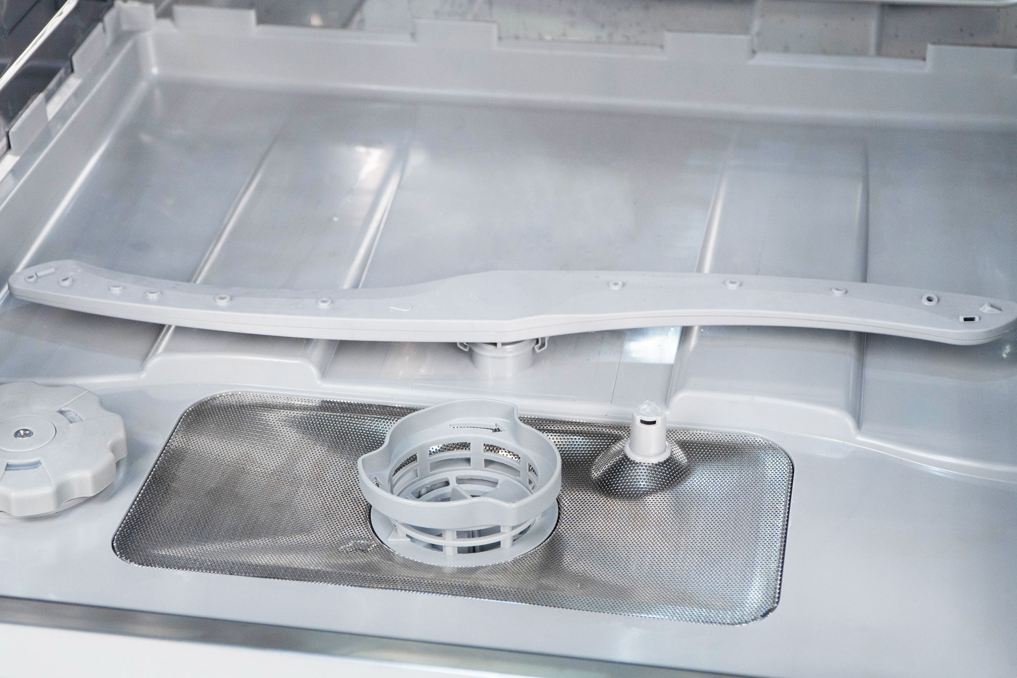 Khay dưới của máy có khoang chứa rộng hơn, cho phép rửa các loại nồi nấu, chảo, bát đĩa to….Các loại đĩa thìa, người dùng có thể cho vào vào khay màu xám ở trong khay rửa dưới hoặc xếp làm ngang, sao cho các không có bất cứ vật dụng nào cản trở vào tay quay gạt nước của máy.