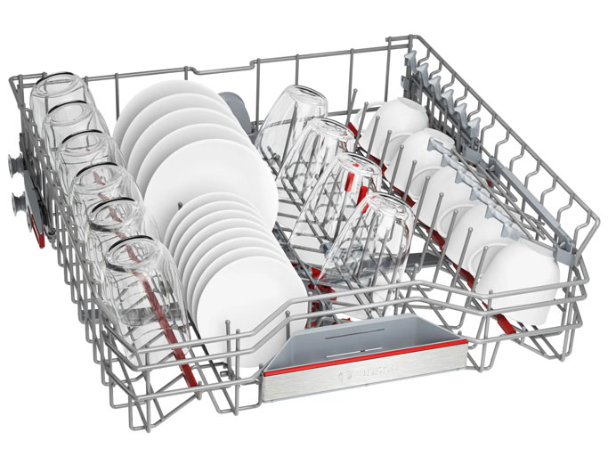Máy rửa bát Bosch SMS6ZCI00P được trang bị giàn VarioFlex Pro với chất liệu cao cấp, bền bỉ và an toàn cho sức khỏe người dùng. Giàn rửa này nổi bật với khả năng điều chỉnh linh hoạt, cho phép người dùng di chuyển các giá cài lên xuống, trái phải, cao thấp hoặc gập lại để tối ưu không gian chứa. Nhờ vào thiết kế thông minh, người dùng có thể dễ dàng điều chỉnh kích thước của giàn rửa để phù hợp với từng loại dụng cụ và tạo thêm không gian cho các vật dụng có kích thước lớn hơn, giúp đảm bảo mọi món đồ đều được rửa sạch kỹ.