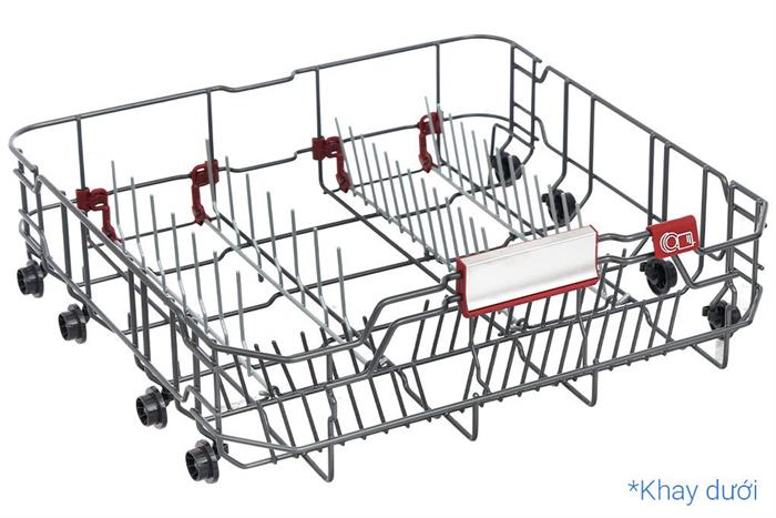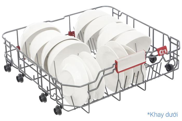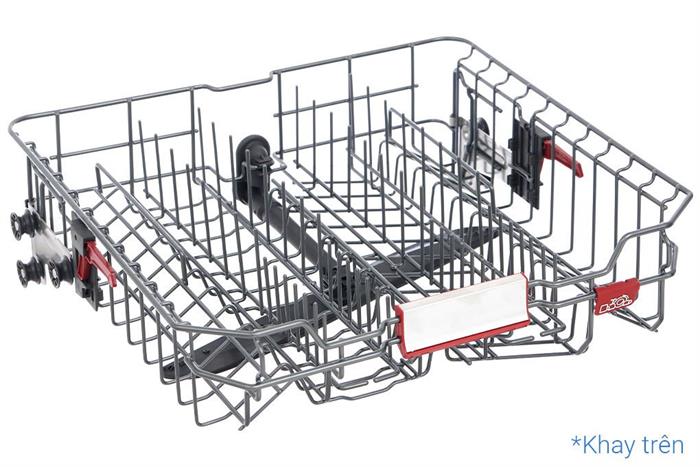Việc bố trí ba giàn riêng biệt không chỉ giúp phân loại đồ dùng dễ dàng, mà còn ngăn ngừa va chạm, trầy xước, đảm bảo tất cả bát đĩa được rửa sạch kỹ càng mà vẫn giữ nguyên chất lượng và độ bền.