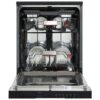 Điểm nổi bật đầu tiên phải kể đến là thiết kế tràn viền (frameless) xu hướng hiện đại đang được ưa chuộng trong các dòng máy rửa bát cao cấp. Nhờ bỏ đi đường viền truyền thống, mặt trước máy trở nên liền mạch, tối giản và sang trọng, dễ dàng hòa quyện vào không gian bếp đương đại mà không gây rối mắt hay phá vỡ tổng thể nội thất.