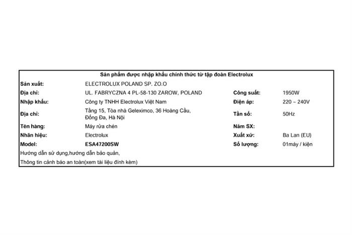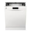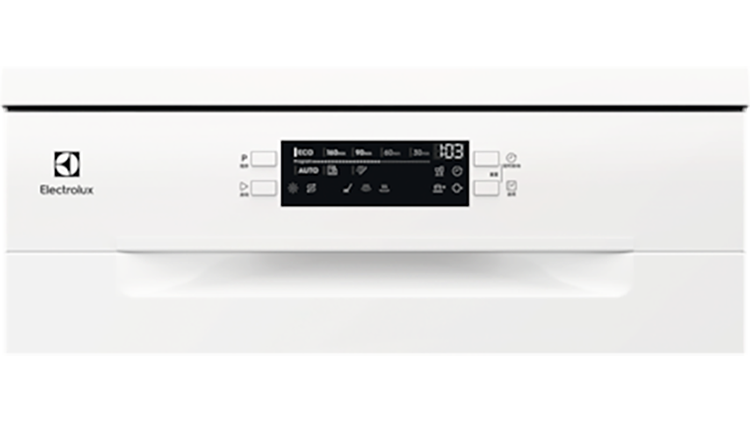 Máy rửa bát Electrolux UltimateCare 300 (ESA47200SW) sở hữu vẻ ngoài tinh tế với gam màu trắng trang nhã, phù hợp với mọi phong cách nội thất bếp hiện đại. Sản phẩm có kích thước chuẩn 598 × 622 × 850 mm (Rộng × Sâu × Cao), dễ dàng lắp đặt vào các hốc tủ hoặc vị trí tiêu chuẩn trong bếp, tạo nên tổng thể gọn gàng, tiết kiệm diện tích. Mặt trước máy nổi bật với bảng điều khiển dạng nút bấm tinh xảo kết hợp màn hình LED sắc nét, giúp người dùng dễ dàng theo dõi và điều chỉnh chu trình rửa từ khi bắt đầu đến khi hoàn tất.
