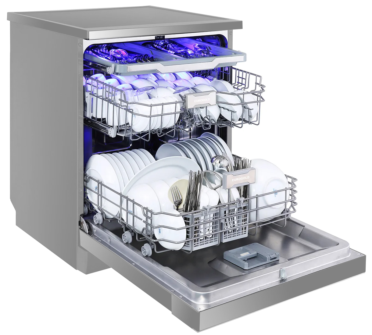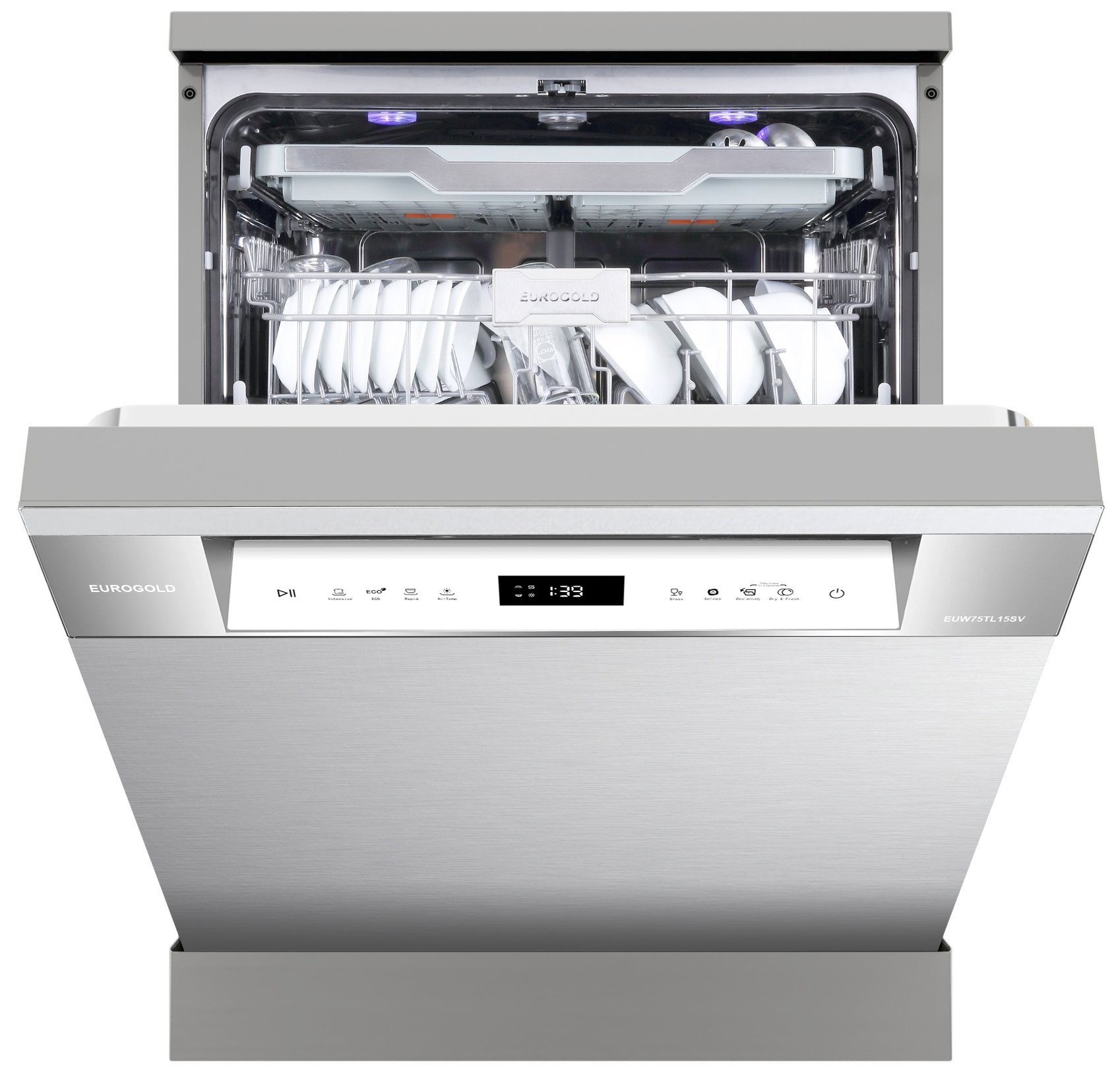 Máy rửa bát 15 bộ Eurogold EUW75TL15SV có nhiều điểm ấn tượng, độc đáo và mới lạ hơn so với nhiều loại máy rửa bát thông thường. Chất liệu của máy là thép không gỉ, bền chắc, toàn thể máy sử dụng tông màu bạc bóng sạch, đẹp tạo cảm giác sang trọng và hiện đại.