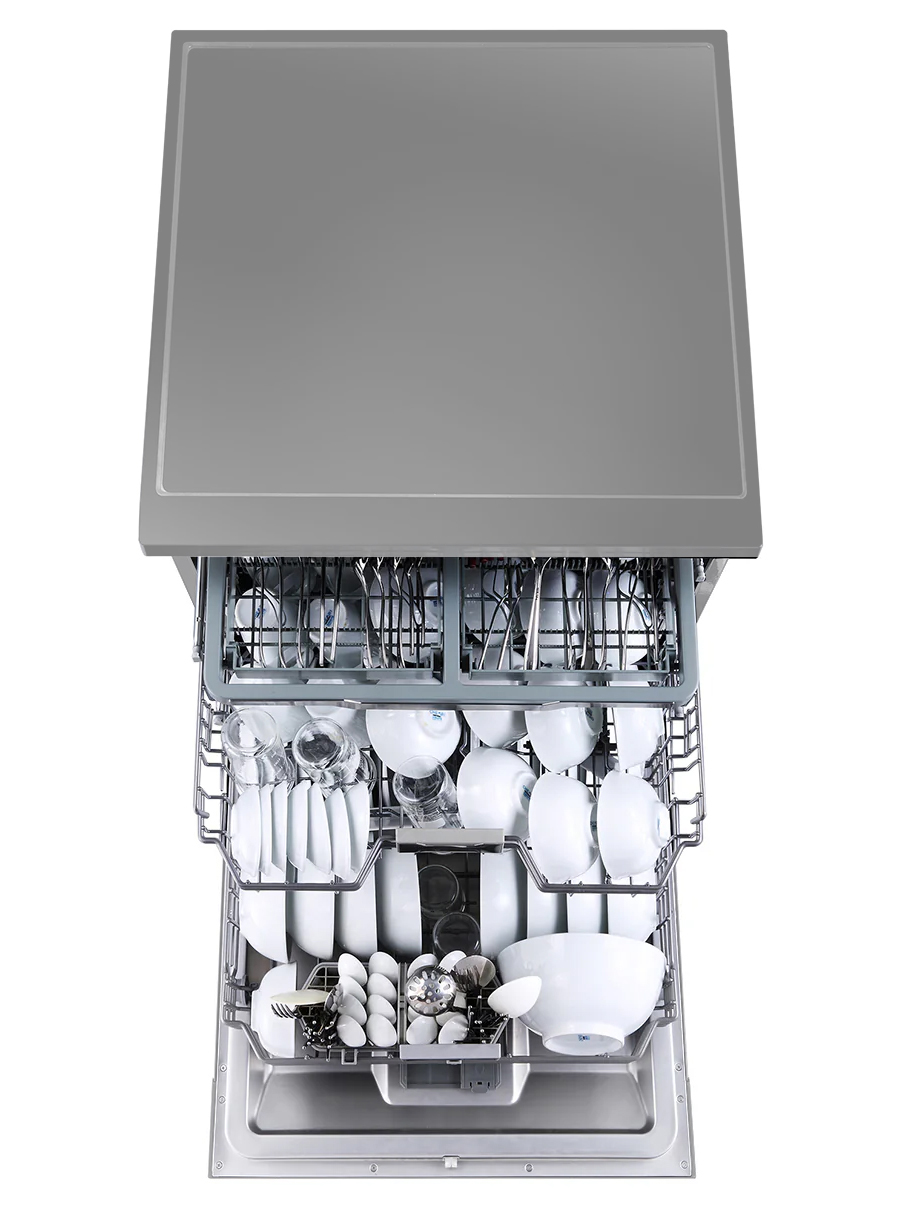 - Tích hợp giỏ để đũa dạng đứng giúp làm khô hoàn toàn thìa dĩa