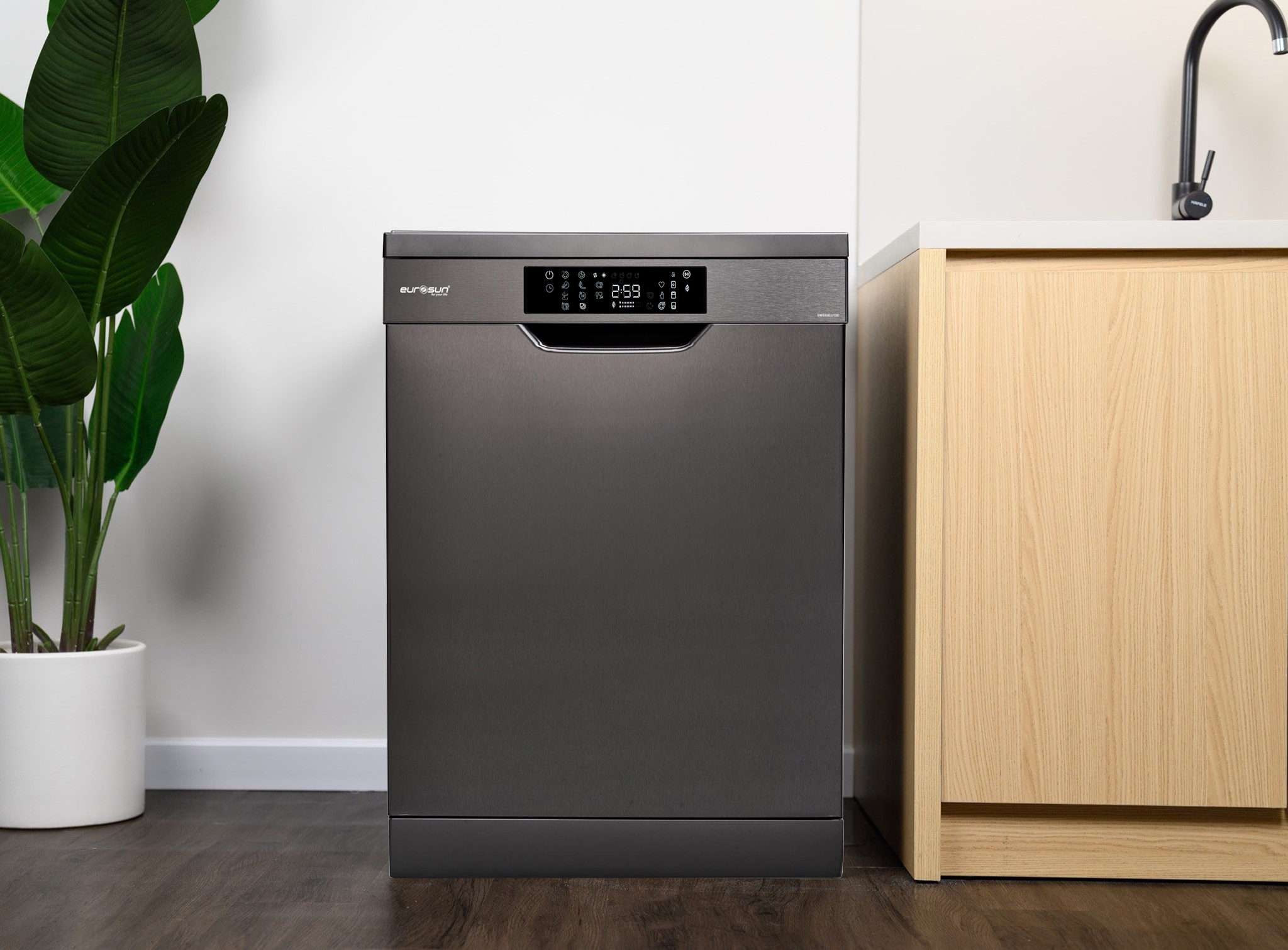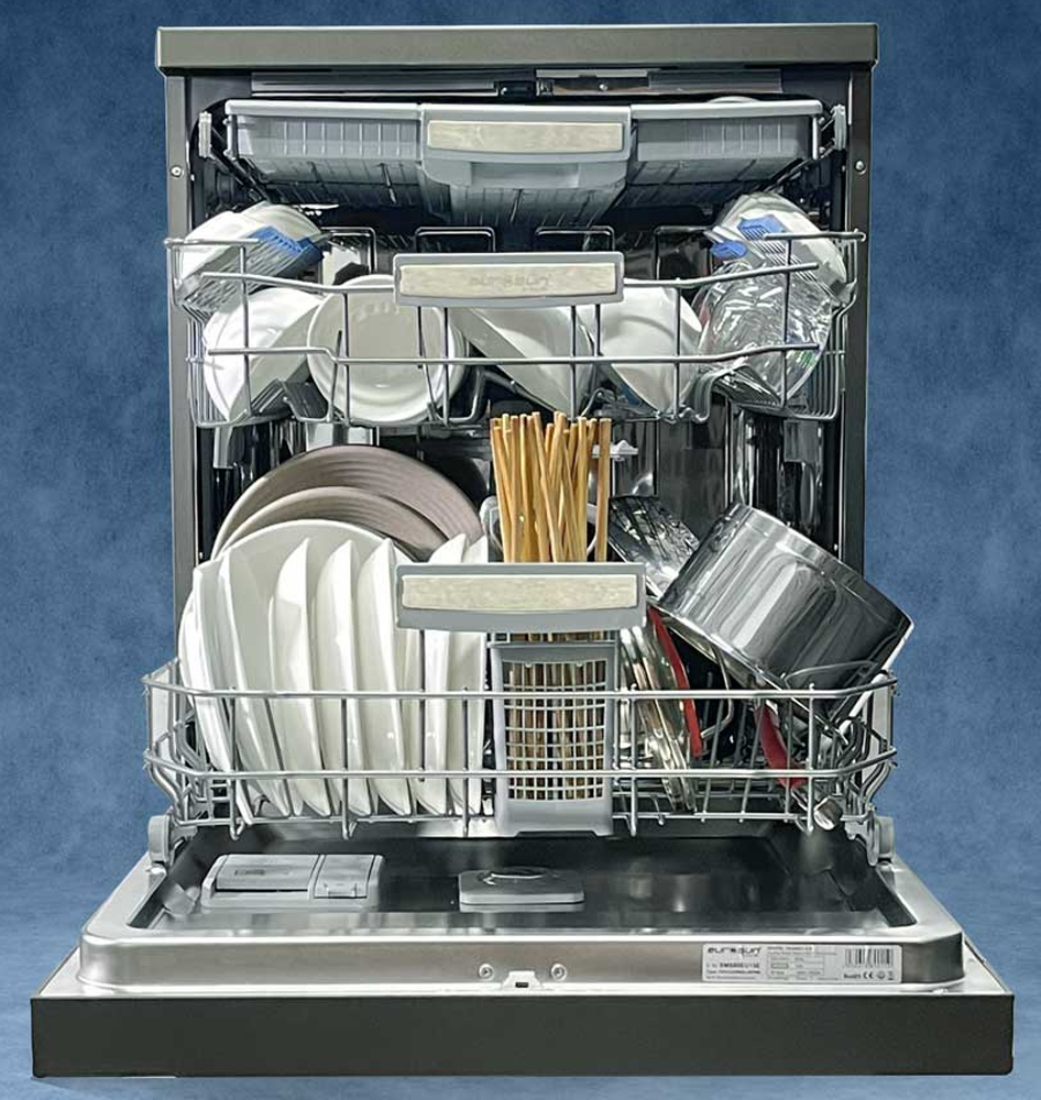 Máy rửa bát 14 bộ Eurosun SMS80EU15E có nhiều điểm ấn tượng, độc đáo và mới lạ hơn so với nhiều loại máy rửa bát thông thường. Chất liệu của máy là thép không gỉ, bền chắc, toàn thể máy sử dụng tông màu inox đen sạch, đẹp tạo cảm giác sang trọng, hiện đại và mát mẻ.