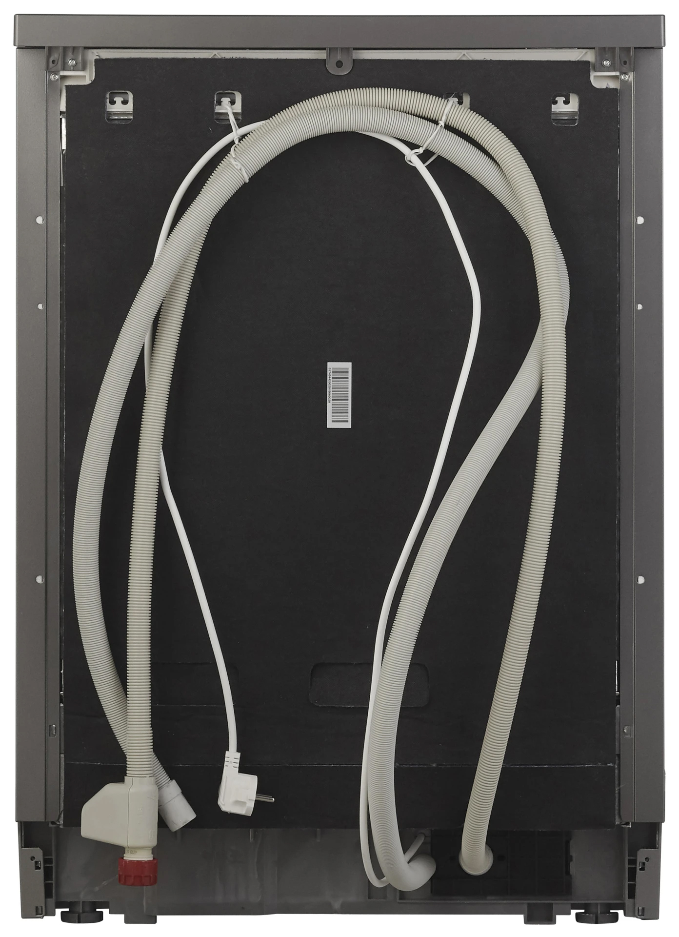 Mặt đằng sau sẽ toàn bộ khung màu đen, chứa ống thoát nước dài 158cm và ống cấp nước dài 154cm. Ngoài ra còn hệ thống dây điện dài 149cm. Tất cả những vật dụng liên quan đến dây điện, ống dẫn nước được sắp xếp ở mặt sau để tiết kiệm diện tích và đảm bảo tính thẩm mỹ cho máy rửa bát Eurosun SMS80EU15E.