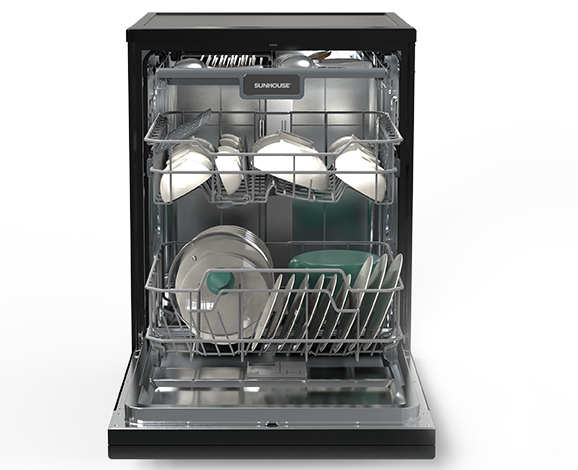 Máy rửa bát Sunhouse SHB8615SEB thuộc dòng máy độc lập, với thiết kế đơn giản, tinh tế, cho phép bạn lắp đặt ở bất kì vị trí nào trong bếp. Thân máy làm từ chất liệu thép không gỉ, phủ lớp sơn màu đen sang trọng càng tôn lên vẻ hiện đại cho căn bếp.