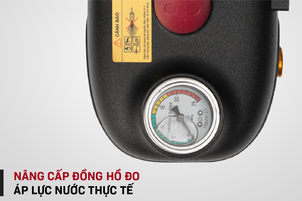 - Máy được thiết kế đồng hồ đo áp lực nước giúp người dùng nắm bắt được áp lực thực tế của dòng nước.